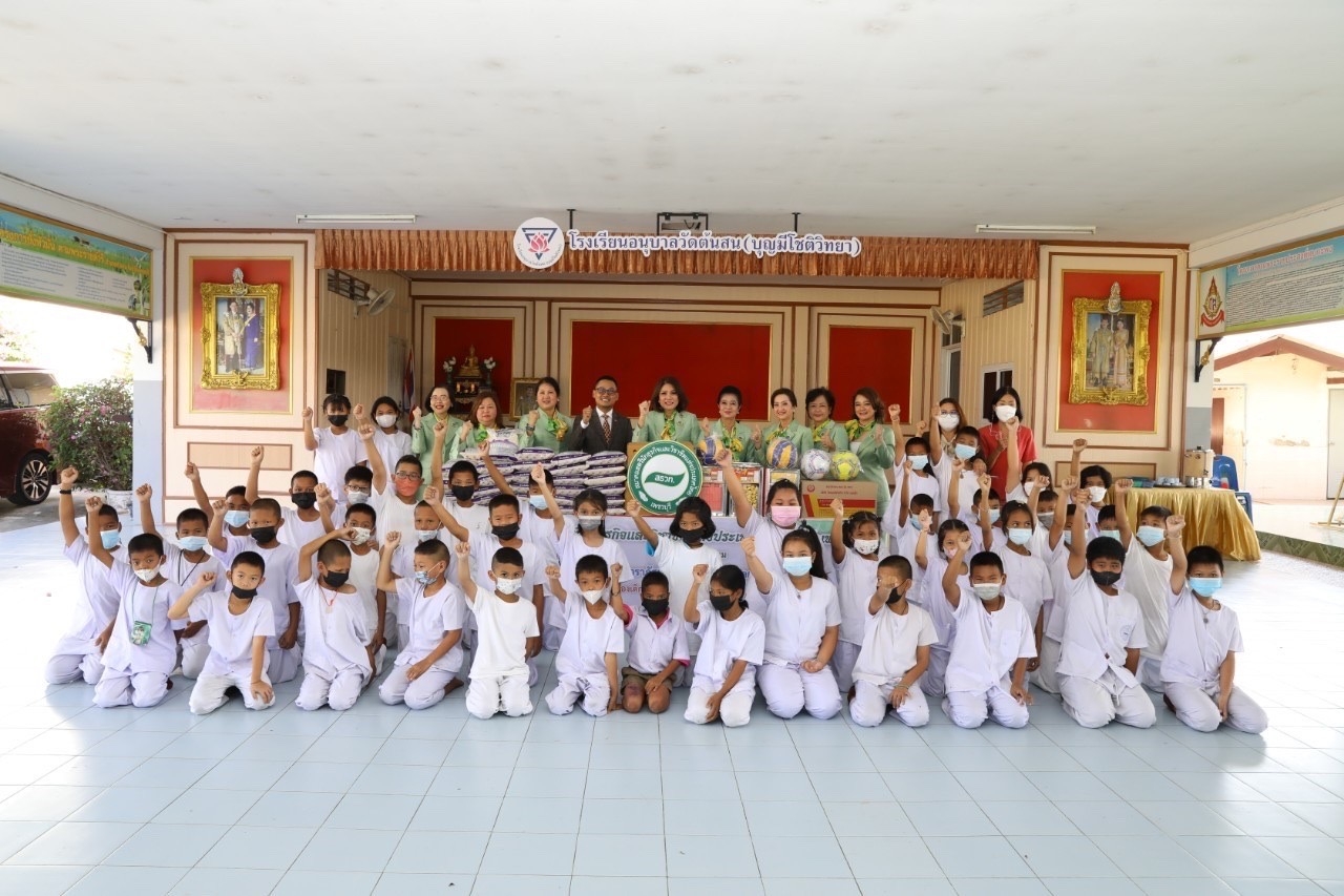 ดร.วราภัสร์ ไพพรรณรัตน์ นายก สธวท. เพชรบุรี และคณะ ฯ มอบเงิน อุปกรณ์กีฬา เครื่องอุปโภคบริโภค ให้กับโรงเรียนบ้านต้นสน